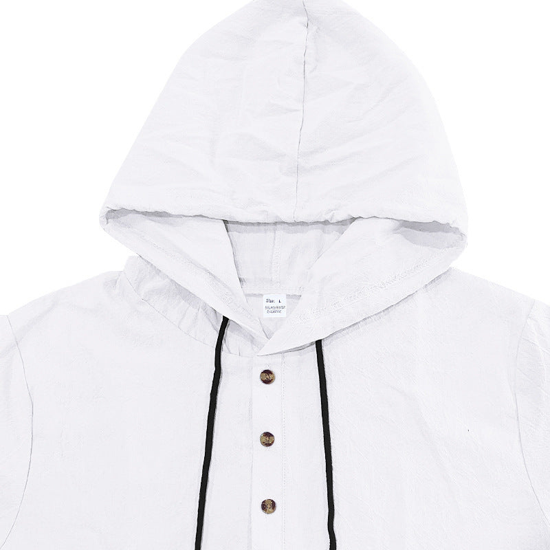 Crafted from premium linen fabric, this men's hooded henley combines breathability with casual sophistication. The short sleeve design and lightweight construction make it ideal for beach outings, while the henley collar adds a refined touch. Perfect for staying cool and stylish during warm weather activities.