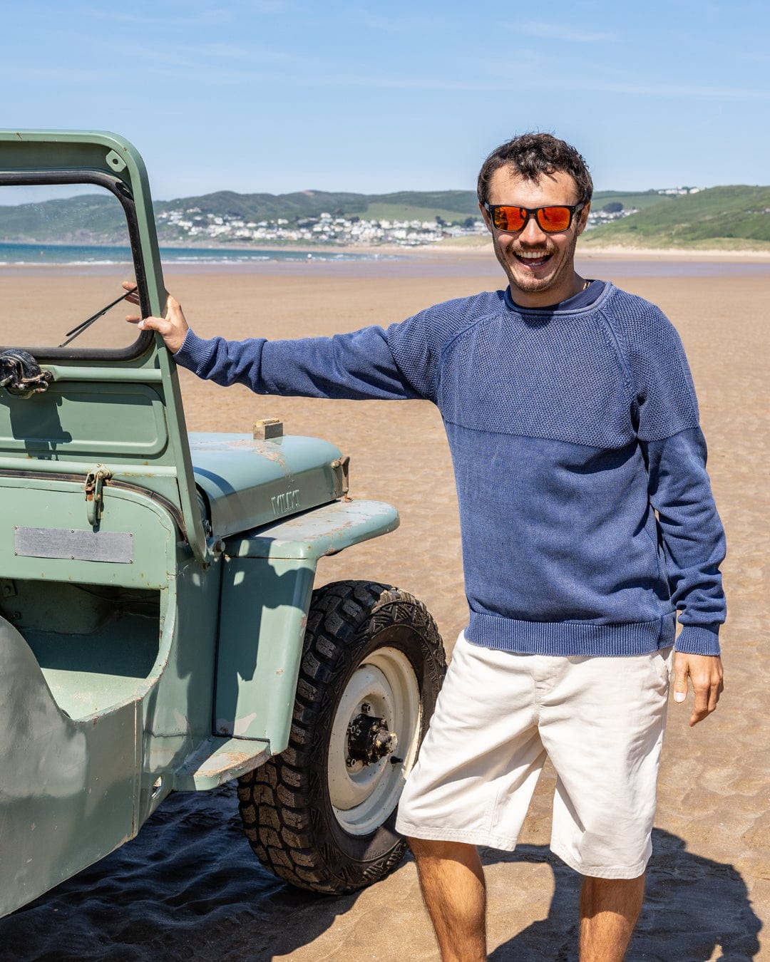 - Our studio model. Sam is 180cm / 5'11' and wearing a size W32